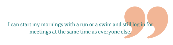 Really well. The time difference is only an hour, and SoG’s remote-first setup makes it easy to stay connected. It gives me a nice balance. I can start my mornings with a run or a swim and still log in for meetings at the same time as everyone else.