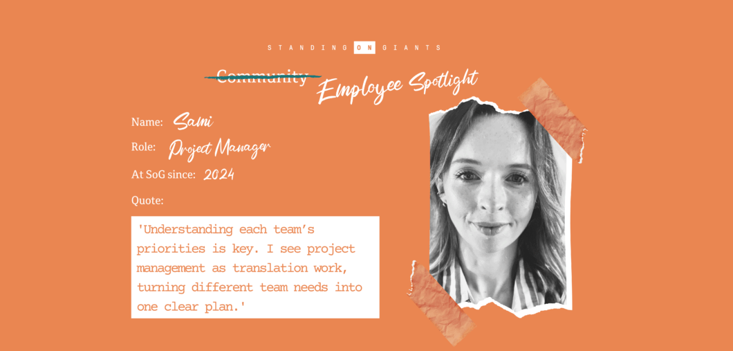 After a decade in advertising, media, and communications working with brands like Google, Diageo, Spotify, and MLB, Sami joined Standing on Giants as a Project Manager. She now leads consultancy and tech projects, bringing structure and calm to complex work while keeping collaboration at the heart of it all.